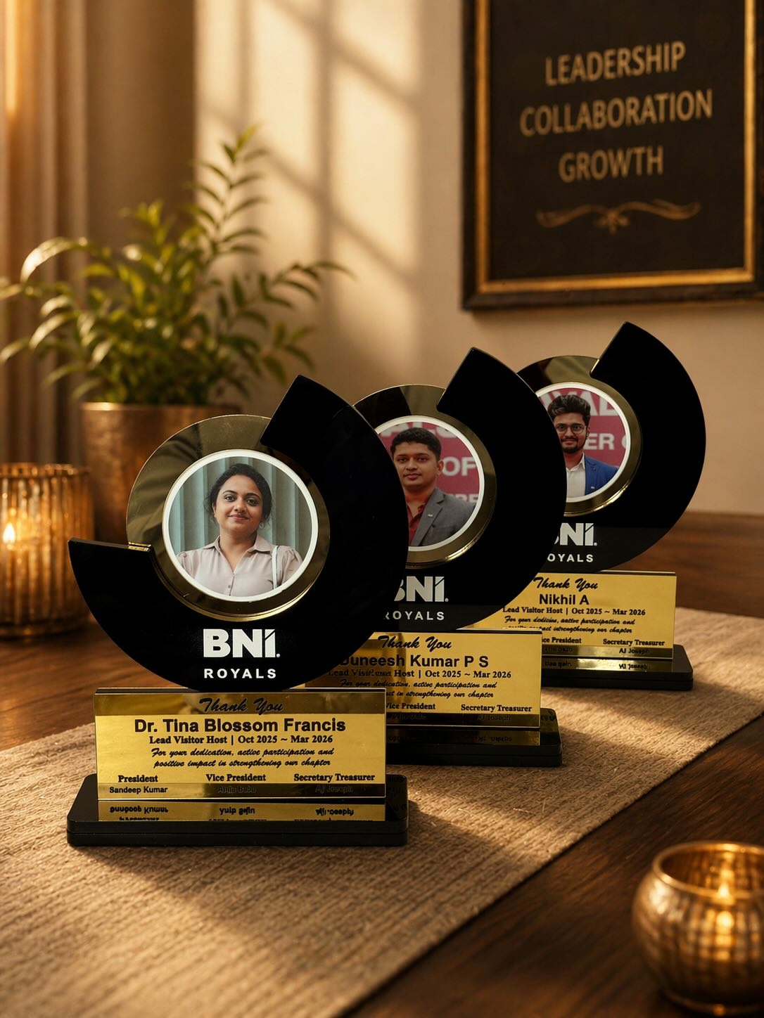 • Black Acrylic Base. with gold plate for printed matter.