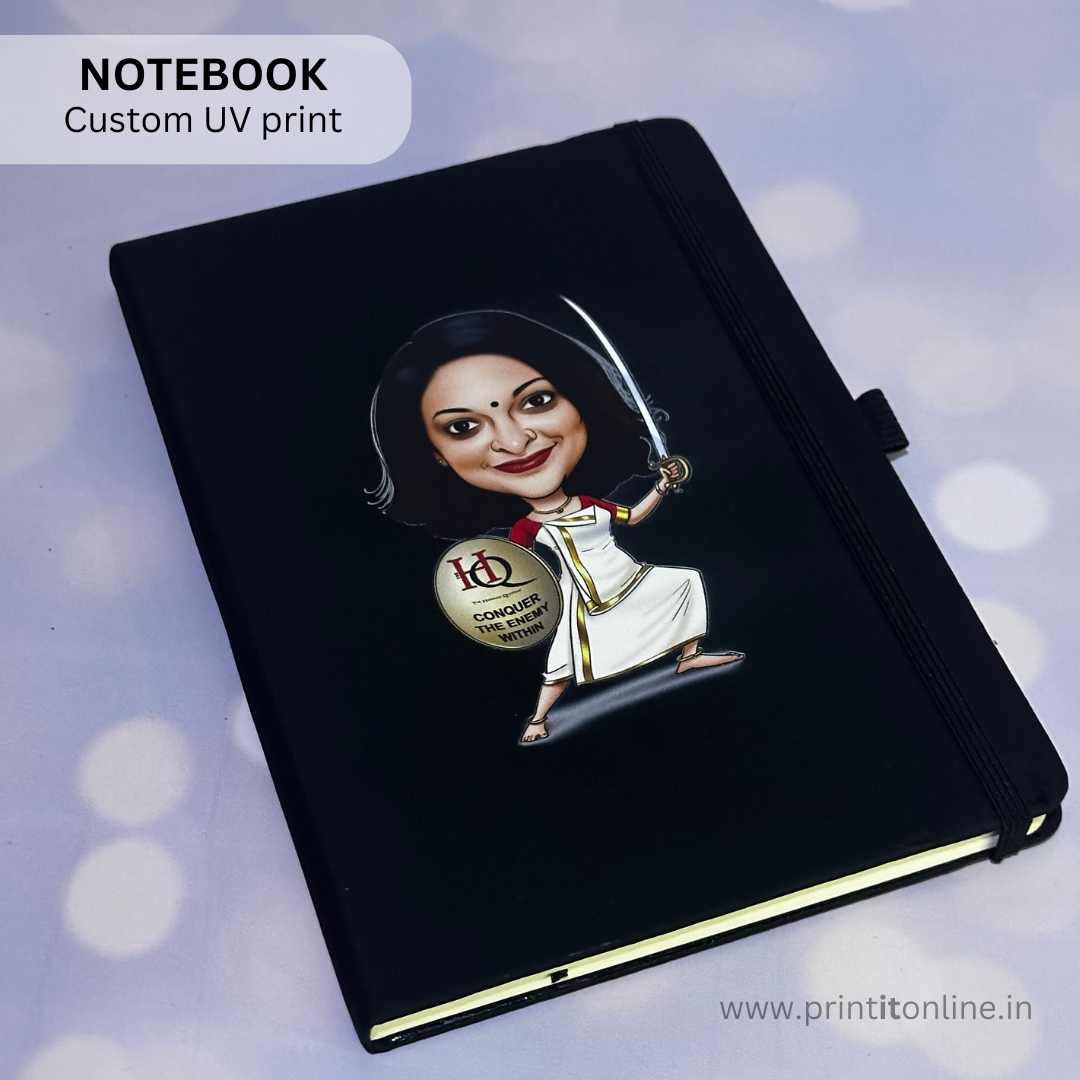 At print it we can create a leather NOTEBOOK with your logo printed in Multicolour. White ink printing is also possible