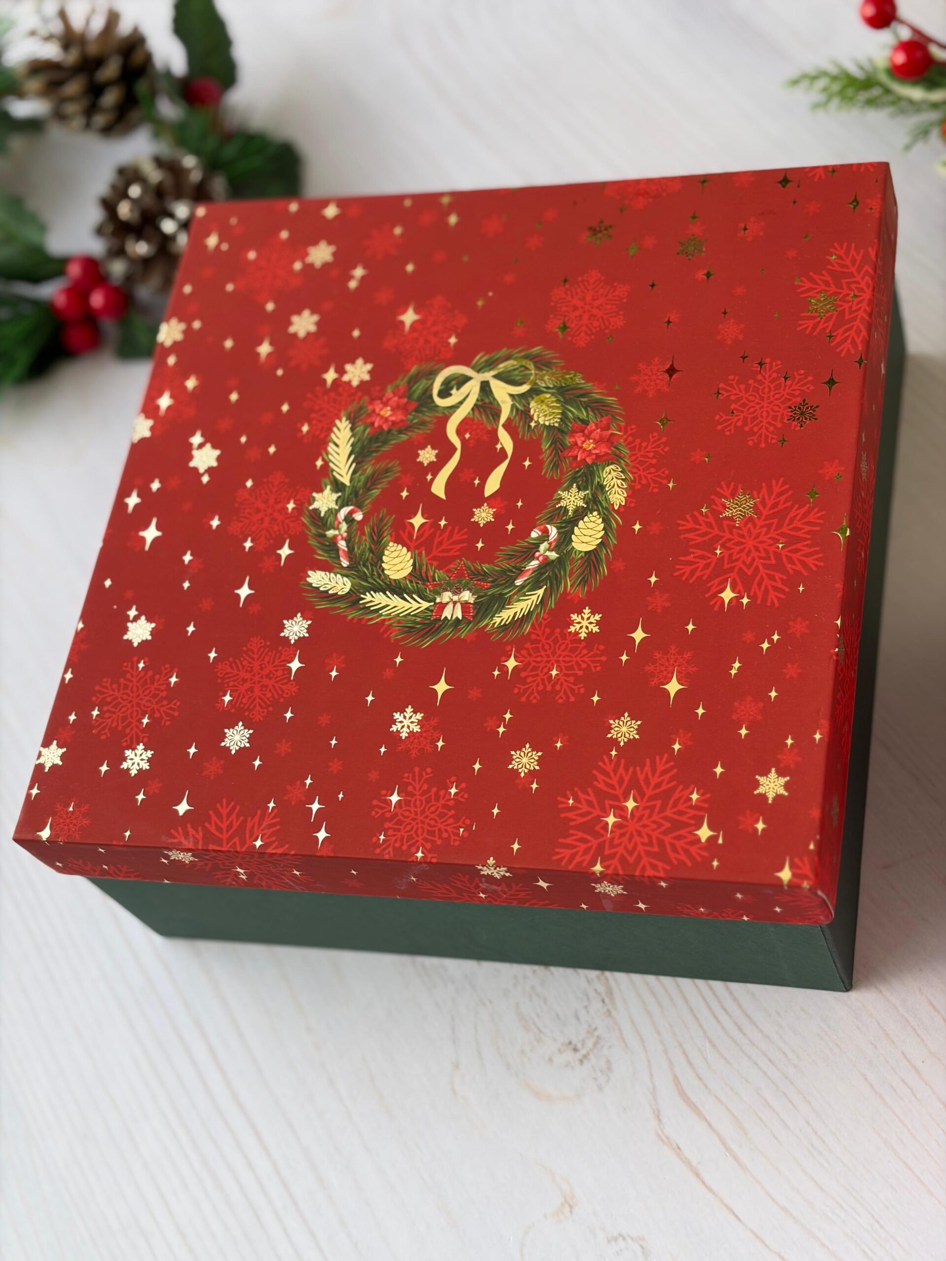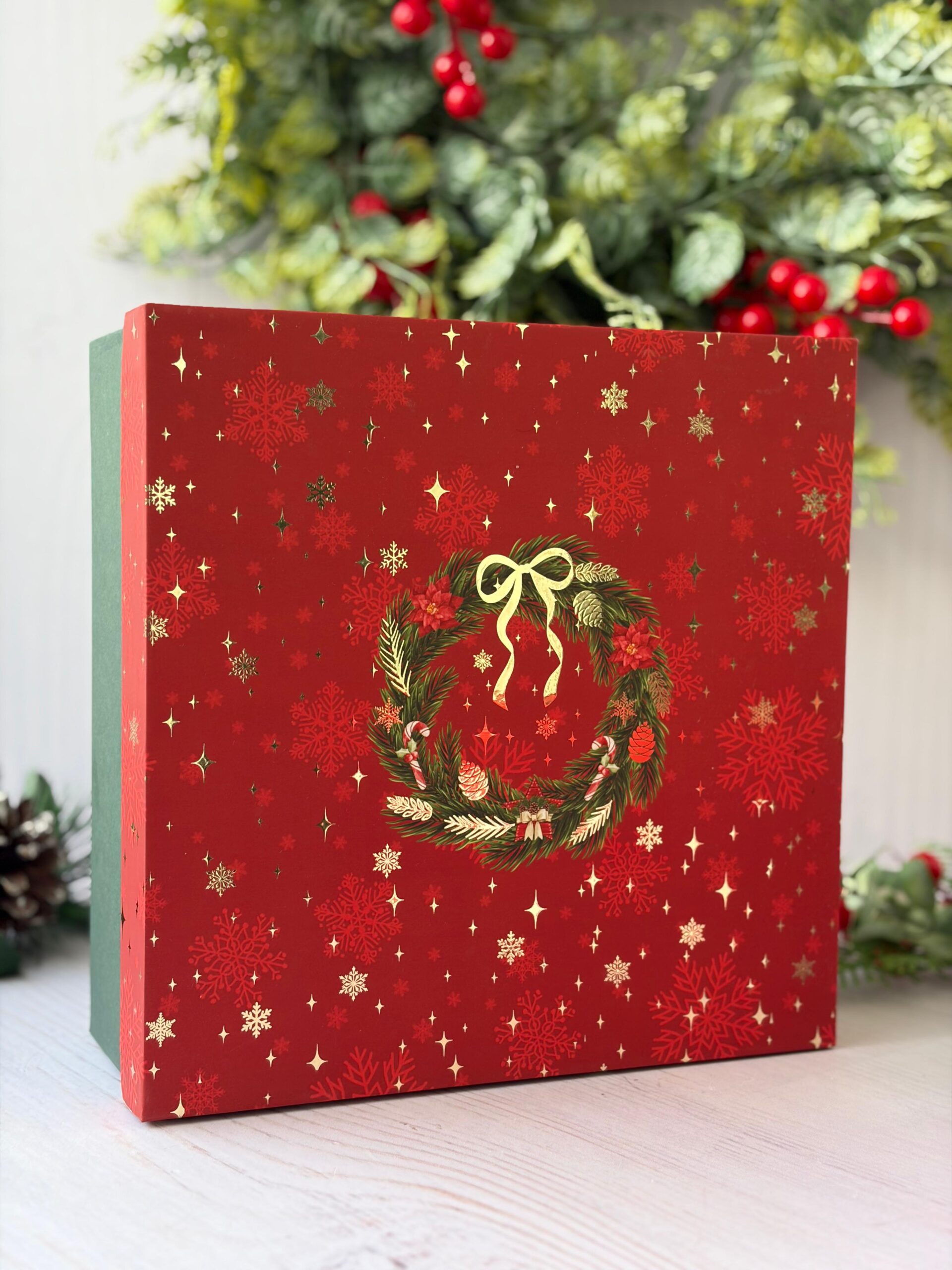 RIGID BOX – 9 x 9 x 3.5 ( FOILD CHRISTMAS WREATH )